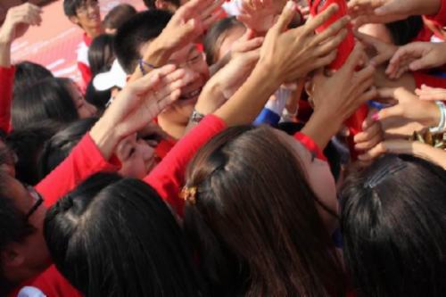 校长传火炬,师生忙喝彩