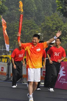 10点45分左右,仲校长拿起手中的火炬,接过从上一棒火炬手陈超传过来的圣火,开始传递任务。学生处、团委、体育部还精心组织圣火迎接仪式,安排了精彩的文艺演出、健美操表演等。仲校一手拿着火炬,一手挥舞着,边跑边向同学们挥手。师生们心情激动,纷纷拿出相机拍摄留影。不少人还在外围跟着校长一起跑。四千多名师生的笑声和欢呼声汇成欢乐的海洋,广外“迎圣火、撑亚运”的气氛达到高潮。“很兴奋啊,今天这么近距离的看到了圣火了”,经贸学院的黄同学说。
