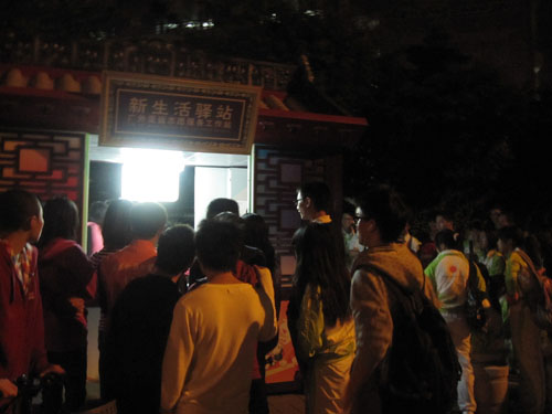 (文字:陈竹 图片:曹雪滢)2010年11月12日,期盼已久的亚运开幕式即将在20:04开始。在此万众期盼,翘首以待的时刻,志愿者服务站的工作人员们依旧坚守岗位,有条不紊地工作着。