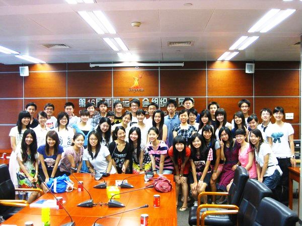 和其他具有临时性质的志愿者团队不同,张绍卿所在的礼宾班从真正意义上来说更像一个班集体。这个班从09年7月份就开始培训,“当时还搞了个开班仪式,学校领导也到场了呢”,绍卿提起当时仍很兴奋。整个礼宾班有51个人,其中广外人就占了五分之三以上。作为专业的外事志愿者,特别是亚运会的时候要与国家元首、政府首脑、王室成员、体育部长等贵宾直接沟通的人员,礼宾班的录取条件非常高。行为举止文明端庄、长相较佳是基本的,外语水平高、政治敏感度、应急能力好更是少不了。也正因此,这个班汇集了来自中大广外的许多“牛人”。
