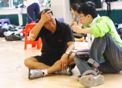 韩语记者鞠佳良与韩国教练轻松交谈