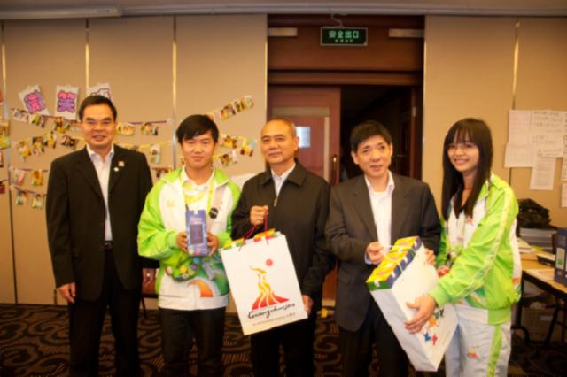 陆桃香等总部饭店团队负责人,对我校志愿者予以高度评价,纷纷称赞我校志愿者经受得了压力,扛得起任务,在工作中得到了各位亚运重要官员的高度评价和肯定。隋广军代表学校党委,给予我校志愿者们充分肯定与鼓励。他说,亚运工作成功举办的军功章上,有大家很大的一半,希望同学们再接再厉,在志愿服务过程中时刻牢记职责,把中国青年、广东大学生、广外学子的风采展示出来,并勉励我校志愿者们:参与亚运志愿服务是人生一份美丽的回忆,也是一笔珍贵的财富,希望同学们能够在志愿服务结束后,把在志愿服务过程中养成的吃苦耐劳、乐于奉献、帮助他人的良好品德,坚持下去并发扬光大。