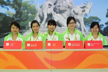 与其他志愿者不同的是,亚运城主新闻中心语言服务台的志愿者是通过投简历并经过严格面试后脱颖而出的专业志愿者。他们运用自己的语言优势,为媒体村的工作人员提供包括英语、日语、阿拉伯语等五种外语翻译服务。因为每一种语言只有一个志愿者,语言服务台原则上只提供现场翻译。但在实际工作中,常常有突发事件需要志愿者前往相关场合提供口译服务,如外国媒体遇到身体不适却无需要跟医疗室的工作人员沟通,记者采访外国友人等。