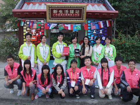 为了更好地服务亚运,学校还专门成立了亚运志愿者赛时指挥中心,并在南北校区各设立一个亚运志愿服务工作站,分别从宣传报道、后勤交通、安全信息和激励等全方面为我校志愿者提供服务。他们每天起早贪黑,全心全意地为奋战一线的志愿者们提供信息咨询、疏导交通、发放慰问品和荣誉徽章等服务,并得到了上级领导和我校志愿者们的一致好评,堪称“志愿者的志愿者”、“志愿者的二次方”!这无一不体现了我校自行设计的纪念徽章上的“专业、奉献、坚韧、进取、包容、友爱”的志愿精神。