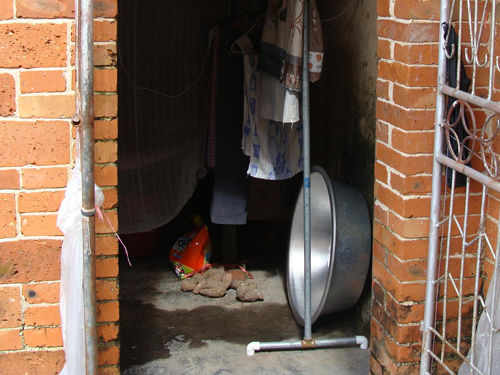 这是阿姨的“室外露天冲凉房”