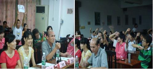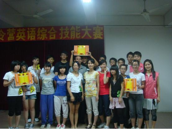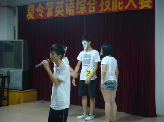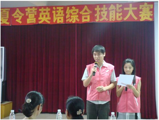 广外的精品活动之一------英语综合技能大赛在云浮郁南县蔡朝焜纪念中学开花了。7月28日下午,由广东外语外贸大学暑期“夏之约”三下乡服务队举办的“Show Myself夏令营英语综合技能大赛”在纪念中学的教师会议厅拉开了序幕。 本次活动邀请了该校的三位高三英语老师担任评委,由我校“夏之约“服务队队员主持。全部夏令营学生都出席了这次活动,迎来了另一种韵味的“英综”。