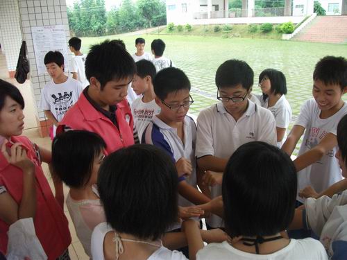 第三天,大雨倾盆。但是恶劣的天气并没有浇灭学生的热情,因为这天是快乐游园会的日子。在工作人员准备好之后,各班排队集结在教学楼一楼中庭。在被公认为最难游戏的“巧解手结”,一、二、四班虽然团结协作,但均未能在15分钟限时内解开手结。再看三班,利用集体智慧,仅以6秒多的成绩成为唯一成功完成的队伍。在其后的“长龙传月”、“晕头转向比球技”、“快乐接接接”等三个游戏之中,四个班的协作精神再次受到考验,但“三个臭皮匠胜过一个诸葛亮”,更何况有百个学生,结果四个班都顺利完成。最后,三班凭第一个游戏中的巨大优势,以全场最短时间获得第一名。这次的游园会,全员积极参与,学生们度过了一个了快乐的早上。