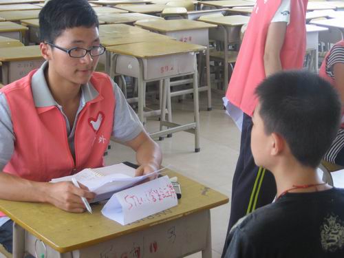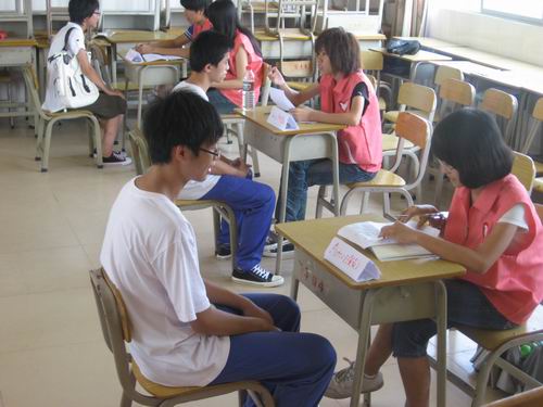 随后,各班由各班主任(暖风服务队队员)带回。在启动仪式之前,各班已经召开班会,各班主任与各班同学见面,并就班级事务进行了布置,学员们反映良好。而在启动仪式之后是正式的授课。本日的课程安排主要有普知课——压力缓解、大学生活,专题英语——职业,影视英语——MuLan,第二课堂——礼仪。虽然第一日教学,学员们还不是十分适应,但是暖风服务队的首日教学还是可圈可点的。另外,暖风服务队的调研分队也开始外出进行调研活动。