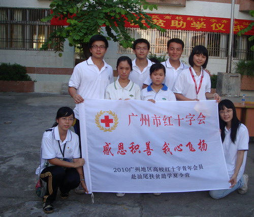8月27日, 为期3日的2010广州高校红十字会青年扶贫助学夏令营活动于汕尾市圆满落幕。我校黄翠涓同学和朱福琦同学参加了本次夏令营活动。
