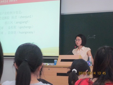 其后,为熟悉人物采访和现场写稿的要求,杨老师分别播放了鲍威尔的英文采访视频和刘翔上海大奖赛赛后的采访视频,要求志愿者们复述整理并在小组讨论后展示稿件。语速较快的视频内容让志愿者们感受到了作为记者的紧张与挑战,同时完整地整理出访谈内容也让志愿者们体会到了志愿者工作的成就感。
