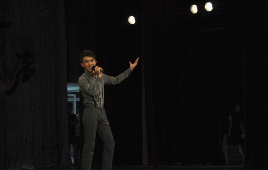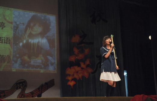 参赛选手们风格各异,28号选手陆杰章同学一出场,就以其亦庄亦谐的造型在全场造成轰动。他的歌声也着实不含糊,一曲《sway》配上他自编的国标舞步,一下子high翻观众席,秋之声也迎来了一个小高潮。