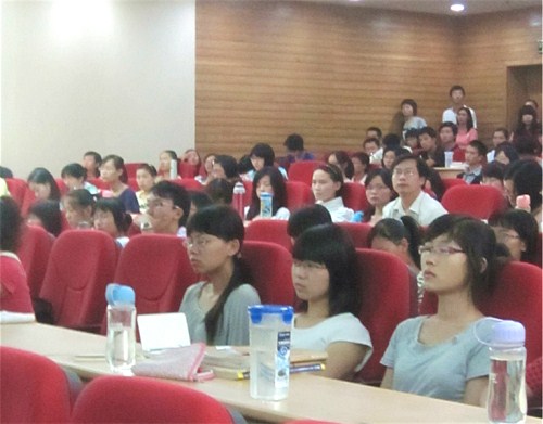 (作者 唐思丽 邓长峰 图片 汤远笛) 2010年10月14日下午,以“现代英语口语交际中的语音语调”为主题的讲座于广东外语外贸大学北校区图书馆负一层学术报告厅顺利开展,同时本场讲座也是第六届学术节学术报告之名师畅谈的第一场专题讲座。参与本次讲座的嘉宾有校团委书记刘志军,以及来自英语语言文化学院的主讲王桂珍教授。