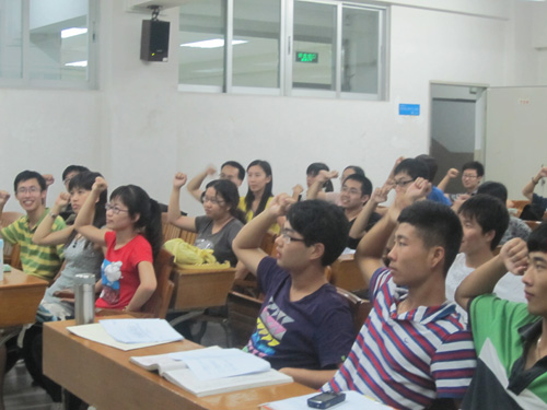 在陈林耿做了简短的培训介绍之后,培训老师首先教志愿者们练习了加油手势,志愿者们都积极配合,认真学习,很快就掌握了包括击掌、举手在内的各种简单的手势。紧接着,全场又练习了简单的助威操,活泼又青春,大家在短短的一个小时之内,就基本把这套体操做到熟练。最后,陈林耿表示对同学们寄予厚望,相信志愿者们一定能在比赛中给广州增加一份风采。 (责任编辑:校团委宣传部) |