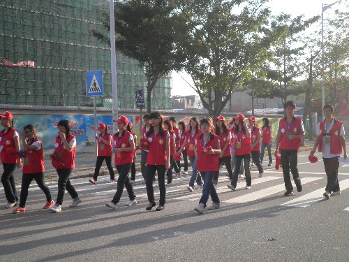 早上6:50,志愿者们从大学城广外出发,奔赴岗位。一路上,大家都期待着第一天的中博会,不亦乐乎地想象着场馆内中外友人亲密交流,想象着自己在岗位上为参展商、游客提供服务的场景。