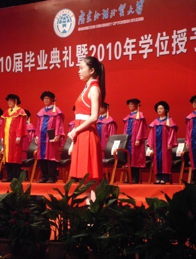 仪式一开始由校管乐团奏响一首维也纳进行曲,迎来了领导的入场,美妙昂扬的乐曲唤醒了在场师生的热情,给以仪式一个完美的开场。在仪式最后,校管乐团又演奏了国歌和歌唱祖国两首乐曲,把整场仪式推向落幕。一场仪式,校管乐团共演奏三曲,在开始和最终分别演奏,以相辉映,这也反映广外学子的4年大学生活的完美开始和终结。