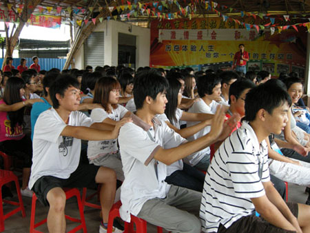 口语练习后是第一天下午的第二讲,团队管理与激励,志愿者被分成两部分分别前往不同地点,通过试玩不同的团队合作游戏,志愿者们也体会到了团队合作的重要性,最后所有志愿者被分在了不同队伍,以队伍为单位进行晚上的野炊和晚会节目的表演。