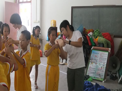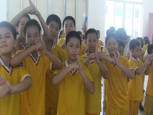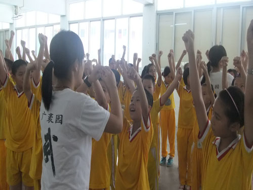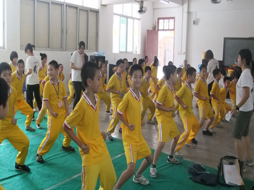 v 7月23日上午,财经学院“载笑生”三下乡服务队在斗门一小举行了一场别开生面的武术活动课。武术课是由四位我们广外著名的广袤园武术协会的大姐姐带领学生们上课。