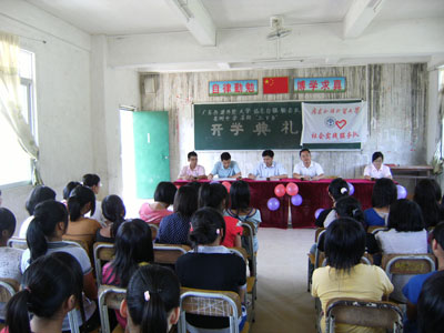 “信息自强”开启自强之旅 本网讯 2010年7月19日上午11点左右,广东外语外贸大学信息自强服务队几经波折终于在中行启程,开启三下乡自强之旅。 信息自强服务队不怕困难,顺利到达目的地 信息自强服务队原定早上7点出发,却因为包车公司的临时毁约而被迫延误时间。队长张纪泉临危不乱,及时告知全体队员并寻求解决办法。综合考虑旅游开销与行程安排,副队长罗水连与多家包车公司协商并最终确定车主。几经波折,队员们对三下乡的热情丝毫没有被减弱,并于上午11时左右正式启程。 出发前队伍合影留念 经过大约3小时的车程,信息自强服务队平安到达云浮市云安县茶洞中学并受到校方领导的亲切接见。在整理完内务后,全体队员享用了由校方特意安排的丰盛午餐。 当天下午在茶洞中学办公室举行了简单的交流会。团镇委书记彭天明、校长戴少雄出席了交流会。在听取了各组的工作安排后,彭天明和戴少雄分别代表石城镇和茶洞中学发言。在发言中,他们对广东外语外贸大学信息自强队的到来表示热烈欢迎,并对接下来信息自强队下乡工作的开展给予了大力支持。 团镇委书记彭天明发话 简单而隆重的开学典礼 20日上午9点半左右,信息自强队义教工作首场“演出”——开学典礼在校内教室中隆重举行。团县委办公室主任潘东林、张月生,团镇委书记彭天明,茶洞中学校长戴少雄出席了开学典礼。信息自强队全体队员和参与学习班的学生也参加了此次开学典礼。在发言中,领导们对信息自强队在上一年的下乡工作给予了高度评价,并预祝本次的下乡活动能顺利开展。义教组的全体组员还特别献上了诗朗诵《曾经,我们都有一个教师梦》,他们用深情的语言表达了他们对本次下乡活动的期待。 开学典礼 首日工作开展顺利 下午2点30分,义教工作正式进入主题。组员杨艳萍给学生们准备了带有“广外”特色的课程——英语视听说。另一名组员李可宏也给结合时代气息给学生们上了一节生动有趣的“世博”课。极富趣味性的内容激发了学生们的兴趣。在“第二课堂”上,文娱组组织学生参与了精彩的文娱活动并观看了上一年的下乡总结视频和大学生活精彩片段。与此同时,调研组的工作也拉开序幕。 一果农在填写调查问卷 信息自强服务队三下乡工作已步入正轨,期待他们今后精彩的旅程。 文、图\洪杰 |