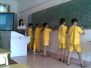 语文恰如耕耘——“财院情谊”和孩子们的那些事 财经学院情谊乡畔服务队 莫洁贞 7月24日上午9:30,广外大财院“情谊乡畔”服务队义教组迎来了他们的第一节语文课。 本节课的的主题是“语文恰如耕耘”。老师首先让学生漫谈对语文的印象与看法,多数学生都表示自己喜欢语文课。老师小结:语文确实是一门很有魅力的学科,文字传达情感,一篇好的文章能给人启迪,引入深思,但是一篇好的文章从何而来,喜欢语文是否就一定能学好语文呢?事实上,学好语文不简单,它就像一个耕耘的过程,首先我们要选种,再播种,还要浇水施肥,除草除虫,一个辛苦的春耕夏种才好不容易盼来秋收。学习语文也是一样的道理,回顾一下我们这几年学习语文的历程,从最初的声母韵母,到拼音,到汉字,到组词,到造句,最后再将锤炼过的句子连缀成文,这样一个过程不正与农人耕耘的过程不谋而合吗? 为了能让学生更好地再去体会这一过程,老师设置了一个小组竞赛,内容就是:老师在黑板上写一个拼音,如“yi”,然后分组派代表上来按拼音写汉字,不拘声母,限时三分钟,写得越多越好;然后再派代表上来将已写好的汉字组词;最后是每个组的每位成员轮流用本组所组的词造一个句子,同样是限时三分钟。 |