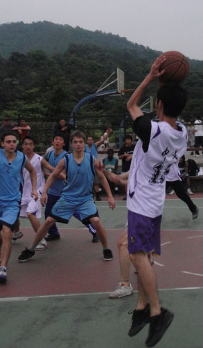 第三节的比赛更加激烈,双方防守也更加严密。本节前半段,留学生数次抢断成功,攻到对方篮下,但似乎还是缺乏手感,均没有得分。而后半段中,中文的防守出现失误,留学生19号哈林如无人之境上篮命中,其他队员也三次在中文的夹攻中投篮得分。面对这种状况,中文毫不焦躁稳扎稳打,3号李贤打出精彩的“2+1”,并奉献了全场唯一一个三分球,大大鼓舞了全队的士气。最终中文以24:18的比分继续保持领先优势。