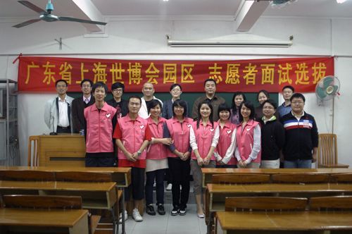 2010年3月20日,在上海的世博会开幕倒计时42天之际,广东省上海世博会园区志愿者面试选拔活动在我校举行。本次面试选拔活动评委由广东省青年志愿者行动指导中心、中国国际贸易促进委员会广东省委员会工作人员及我校老师组成,共122名候选人参加了面试。广东省青年志愿者行动指导中心主任蒋巍、校团委副书记何越晖出席了当天活动。
