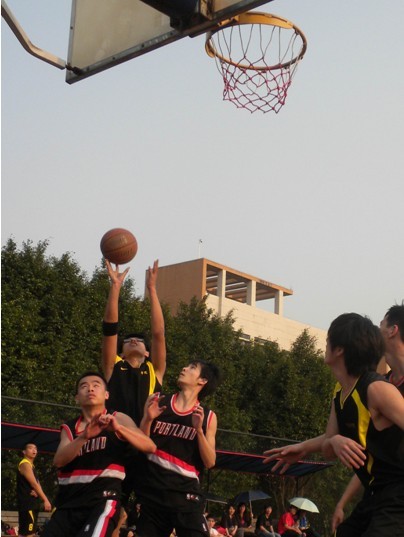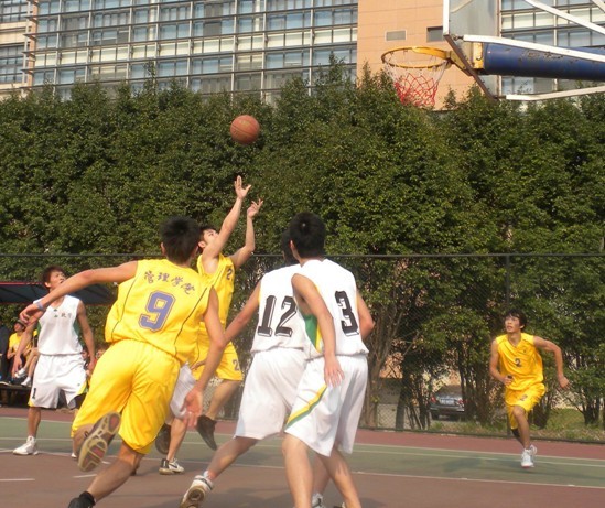 第一场比赛为管理学院对战政管学院,第一节开始,政管学院1号宋福创便迅速抢断上篮得分,随后管理学院13号刘英东博得打手犯规,获得2+1的机会,全取3分将比分反超。管理学院继续发动猛烈的攻势,近乎完美的外线配合加上坚固的内线防守,管理学院打出了一个小得分高潮。第一节结束后,管理学院以22:5的比分暂时领先。