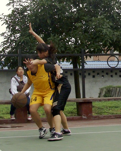 在女子组的比赛中,首节开始,双方火药味十分,比赛异常激烈。公开首先得球权,41号谭健媚接队友传球后跳投命中,拔得头筹,接着21号陈倩之又果断出手,再砍2分。公开4:0完美开场。而落后的英文被迫暂停,暂停过后,英文抓住罚球机会扳回一分。之后双方命中率有所下降,屡次进攻无法得手。本节仅剩一分钟时,英文11号李俏琴面对篮下的几重包夹,强行突破,球应声入筐。公开多次组织进攻,篮下抢夺分外激烈,临近结束时公开再入一球,以6:3的比分暂时领先。