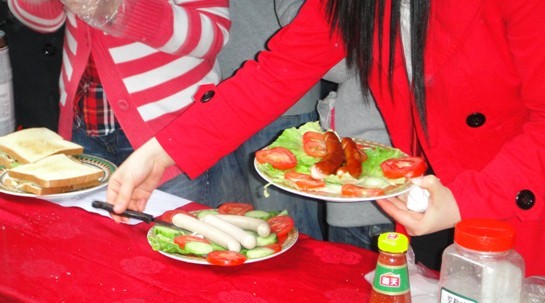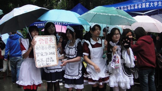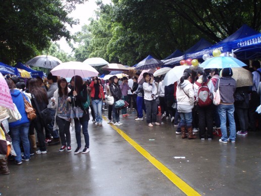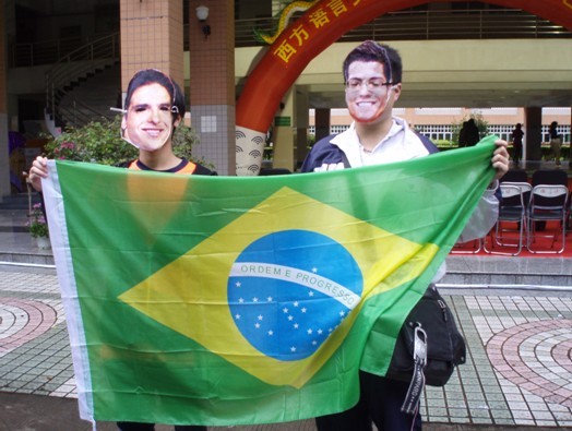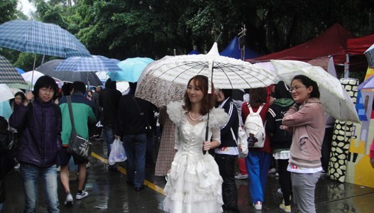 开幕式结束后,更加精彩的嘉年华拉开了帷幕,来自西语学院六个语种的同学们及国际学院的部分同学们,纷纷使出浑身解数招揽顾客。尽管天公不作美,可是校道上依旧游人如织,热闹非凡。在诸多文化展示中,最吸引人眼球的是欧洲各国的别样风情:法兰西的优雅浪漫,西班牙的热情奔放,意大利的神秘绮丽,葡萄牙的轻松闲适,德意志的严谨认真,俄罗斯的勇敢博大,最吸引人味觉的当然是让人眼花缭乱的各国美食:法国可丽饼和水果沙拉,西班牙海鲜饭和果酒,德国啤酒和火腿,俄罗斯罗宋汤和伏特加……绚烂多姿的文化展示及各式各样色彩缤纷的美食引来了大批行人在雨中驻足关注。