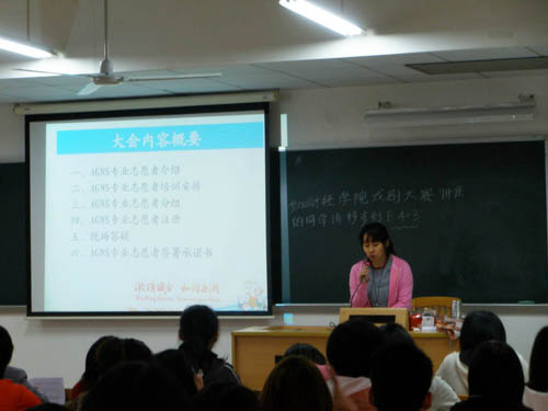 4月15日下午,亚运赛时新闻服务(AGNS)即时引语专业志愿者入围人员第一次大会分别在我校北校区、南校区召开。两校区大会内容相同,主要向入围同学说明即将展开的培训相关事宜,并对同学们的疑问进行现场答复。新华社AGNS团队招募协调主管张妍等工作人员主持了大会,大会具体组织工作由校团委青年志愿者行动指导中心(以下简称“中心”)予以协助。
