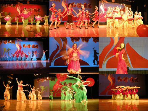 在隆隆的鼓声中,舞蹈大赛正式拉开了帷幕,全场观众的情绪都在激昂的鼓声中被点燃了。在第一章“点燃梦想”中,东语学院的《魅力韩国-炫动之旅》的伞舞表现了韩国的民族特色,而教育学院的《苗家乐》表现了苗族青年男女对爱情的追求;在“飞舞青春”中,商英学院带有浓郁中国风的舞蹈《剪纸姑娘》用舞蹈释放出传统剪纸艺术的魅力,公开学院的《姑娘》展示出藏族姑娘那种既活泼与害羞的风情;在最后一章“再续传奇”中,国际学院的《英台初妆》展示了祝英台既温柔又不失阳刚的一面,经贸学院的《敦煌羯鼓舞》让观众领略到别样的异域风情。