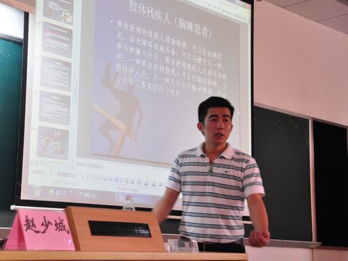 广州亚残运会自然是少不了助残方面的知识,在李霞老师之后,赵少城老师给志愿者们讲解了一些扶残助残的知识。