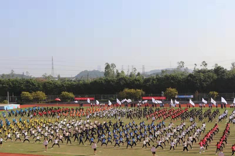 在开幕式中,商学院师生代表参与中国传统拳术——“蔡李佛拳”大型团体表演,表演者步伐灵活稳健,拳路刚中带柔,赢得观众阵阵掌声。商学院方阵在入场式高喊藏头诗“商院勇夺冠军”的口号为体育健儿加油助威,开启了本届校运会的夺冠之旅。