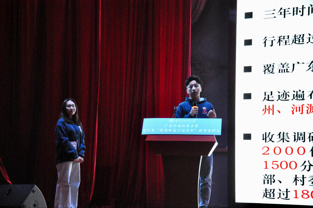 主持人简要介绍答辩流程和规则后,17位候选人依次登台,展现各自风采。经过角逐,中国语言文化学院 “小鹿萌妈”团队、校团委“一路童行”团队、信息学院陈柏宇、商学院徐文韬、信息学院李敬煌、商学院“孜哲旨志”团队、信息学院黄佳文、高级翻译学院黄静怡、高级翻译学院陈映璇、商学院庄美儿、国际关系学院马宋若文获得了“凤鸣岭南十佳青年”的光荣称号;信息学院黄佳文、会计学院林逸、高级翻译学院黄静怡三位选手获得了网络人气奖。
