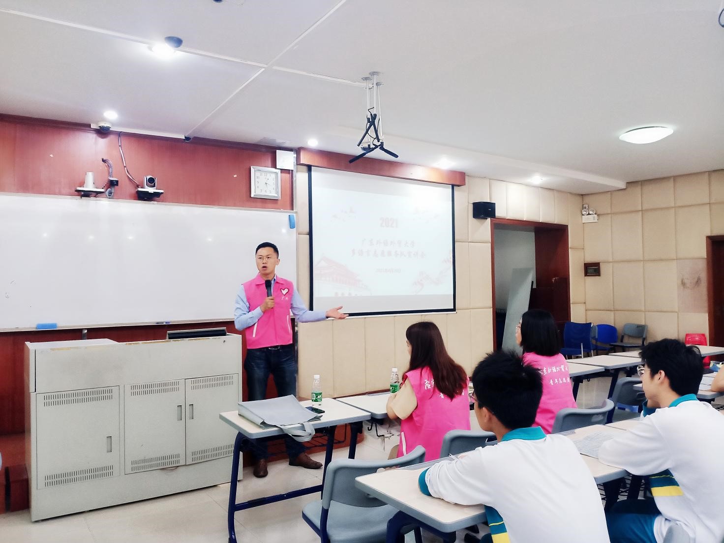 本网讯 为了深入开展党史学习教育,弘扬传承新时代志愿精神,献礼建党一百周年,4月26号,广东外语外贸大学多语言志愿服务队宣讲团走进广东外语外贸大学附设外国语学校,同广外外校的学生代表作交流。我校多语言志愿服务队成员、广外外校相关老师参加活动。