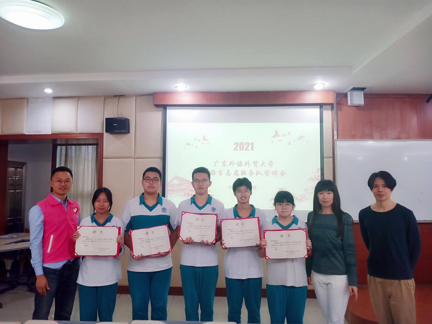 为深入弘扬志愿精神和宣传多语言志愿服务队事迹,现场还举行了多语言志愿服务队宣传员聘请仪式,聘请晏展希、张子扬、林宁、张书恒、项博凯5名同学为广外大多语言志愿服务团队宣传员,希望同学们能在日常的学习生活中除了积极投身志愿服务之外,争做志愿服务的宣传者。