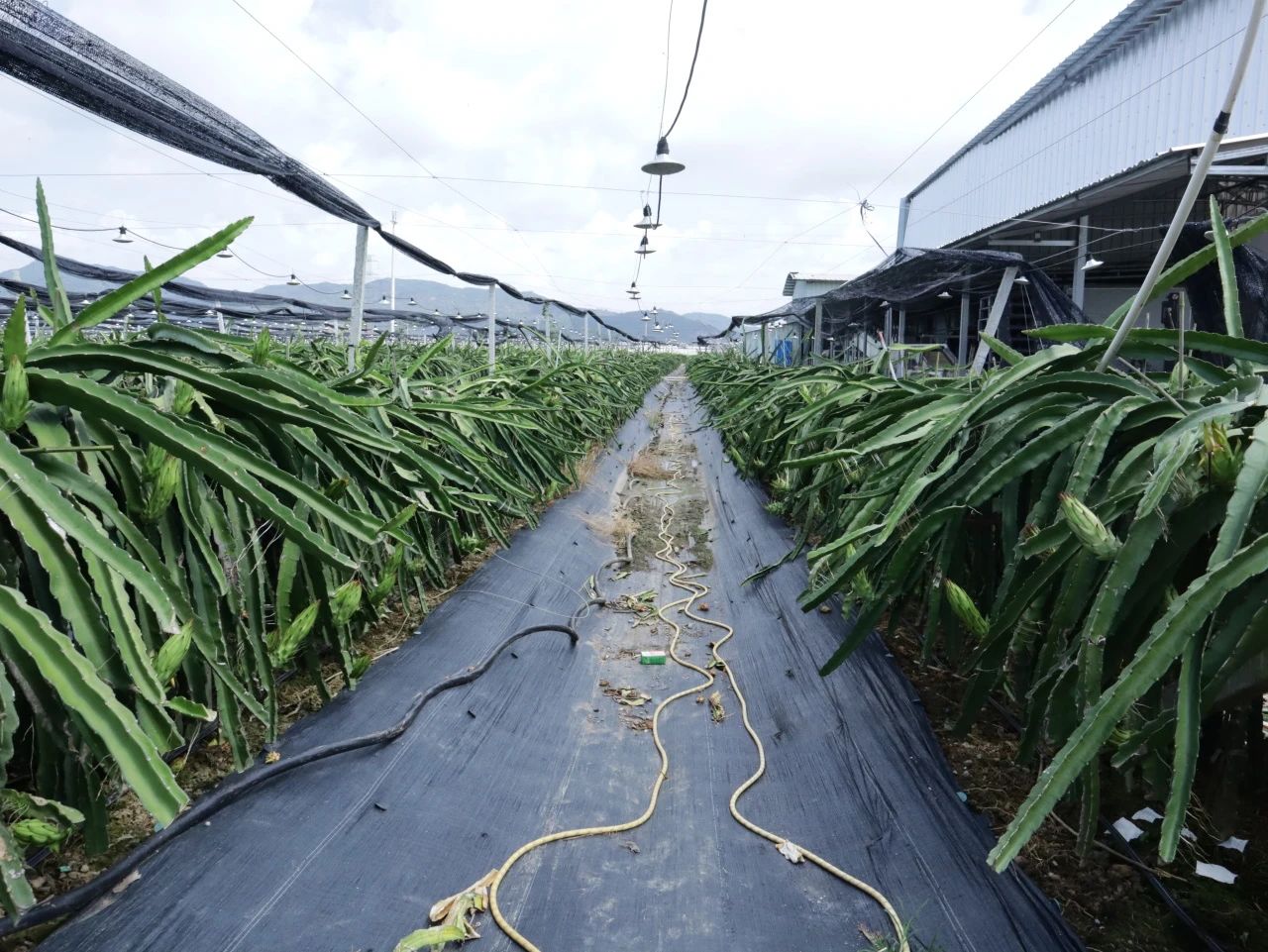 团队考察了火龙果种植园,收集了关于种植规模、生长状况和市场信息的数据。下午,调研队探访了“喜见农物”加工厂,深入了解火龙果的种植技术、经营策略和销售情况。