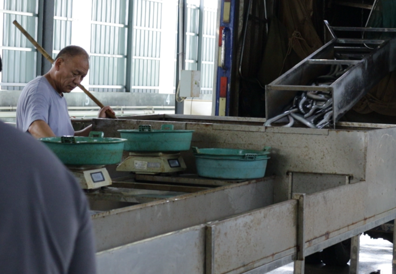 我们跟随何书记到鳗鱼养殖基地走访交流。我们了解到湾口村鳗鱼养殖基地依托其得天独厚的咸淡水水质优势与相对成熟的养殖技术,确保了鳗鱼的高品质。现代化的管理手段与严格的监管制度(包括定期检测鳗鱼健康状况及水质等)有效保障了鳗鱼的健康生长。这一产业显著提升了湾口村的经济实力,促使土地价值大幅增长,极大地增加了村集体经济收入。