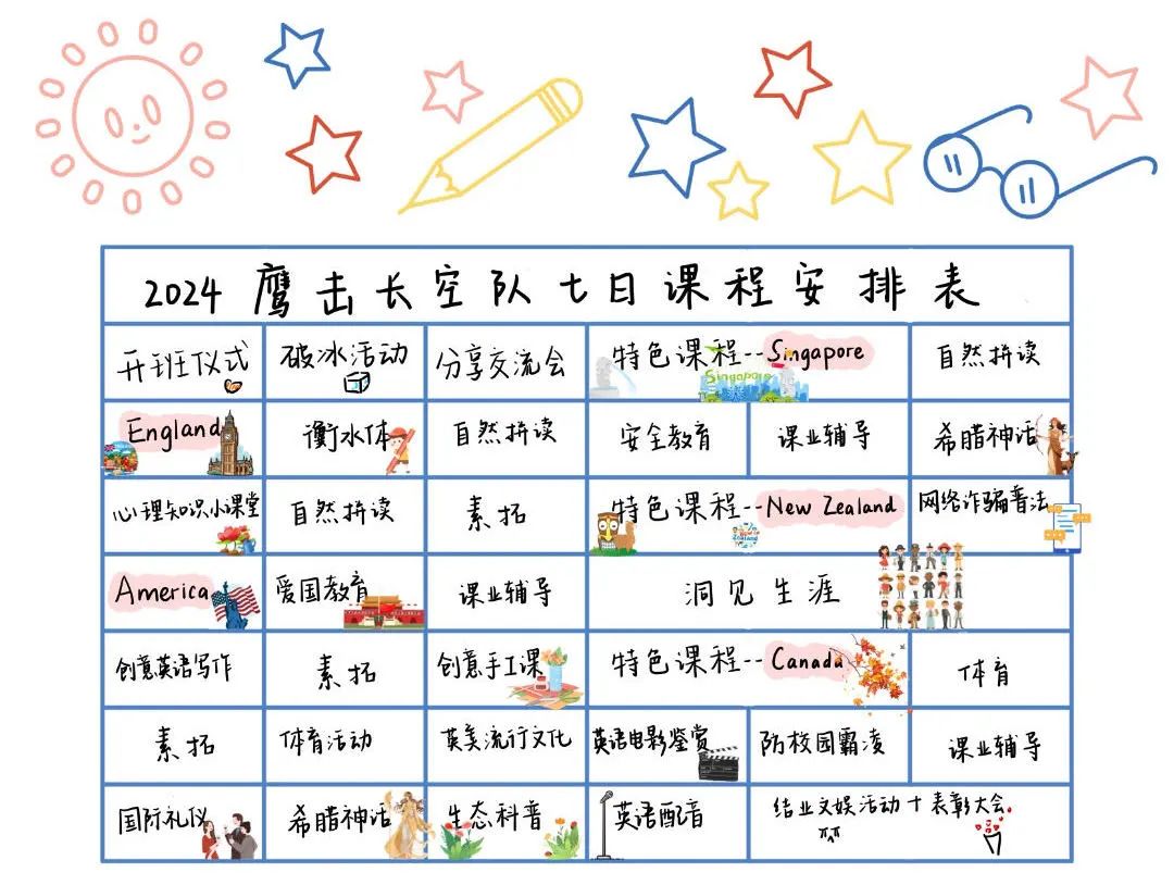 为促进学生身心健康发展,提高学生综合素质,提升学生创新创造能力、批判思维能力和团队合作能力等,鹰击长空队不仅围绕着“英语国家文化”设计主题课,旨在帮助学生理解和尊重世界多元文化差异,增强自身的文化自信和国际视野;还设计了普法教育、美育培养、健康教育等课程。