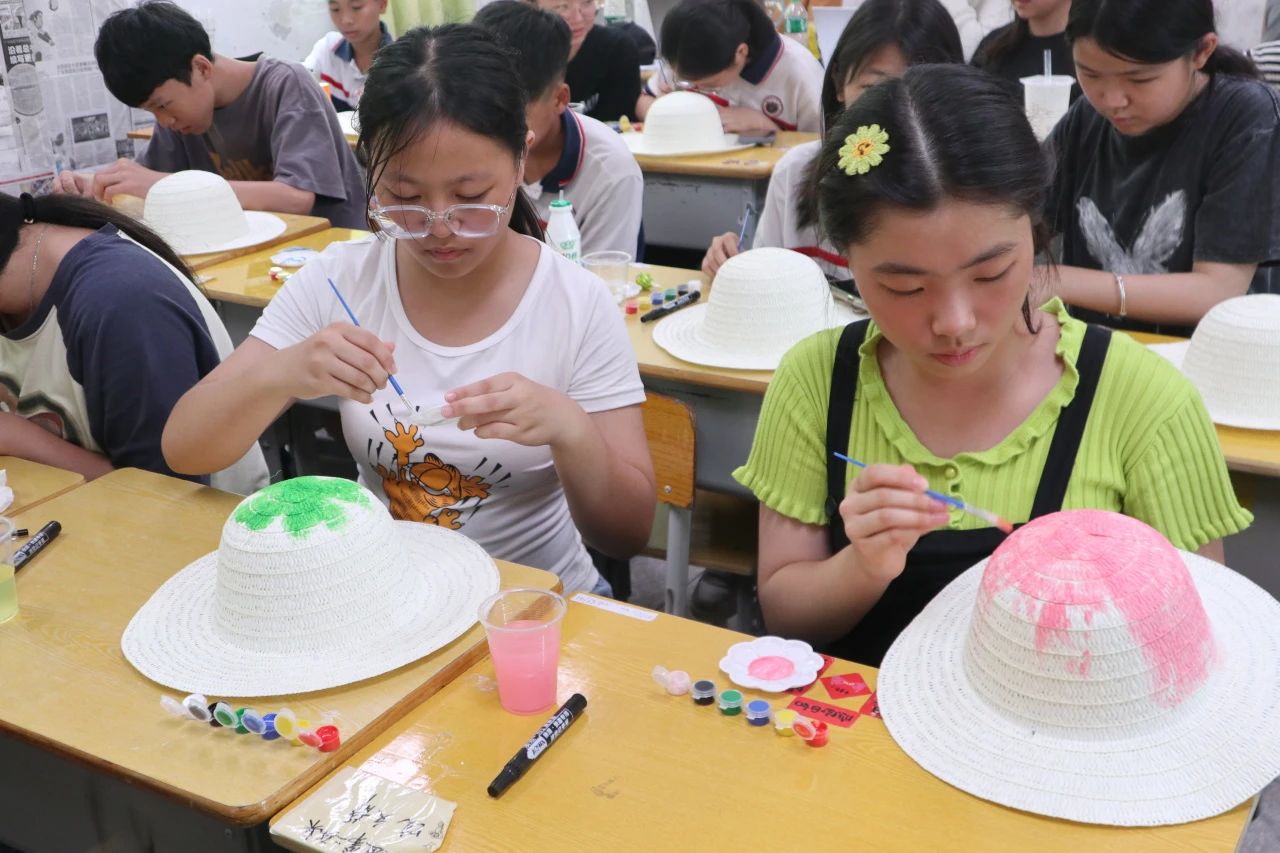 作为“五育并举”中不可或缺的一部分,美育成为了鹰击长空队义教课程中的一环。在队员姜璐的创意手工课中,埔中学子进行了草帽的设计与图案创作。他们发挥自己的奇思妙想,在草帽上勾勒出细腻的线条,涂抹上鲜艳浓厚的色彩。这一活动不仅激发了同学们的创造力,也培养了他们的审美趣味。