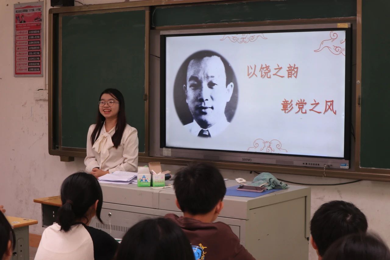 队员胡楚妍在课程中通过介绍饶彰风先生的故事,向大埔中学的同学们传递了饶彰风先生的精神。