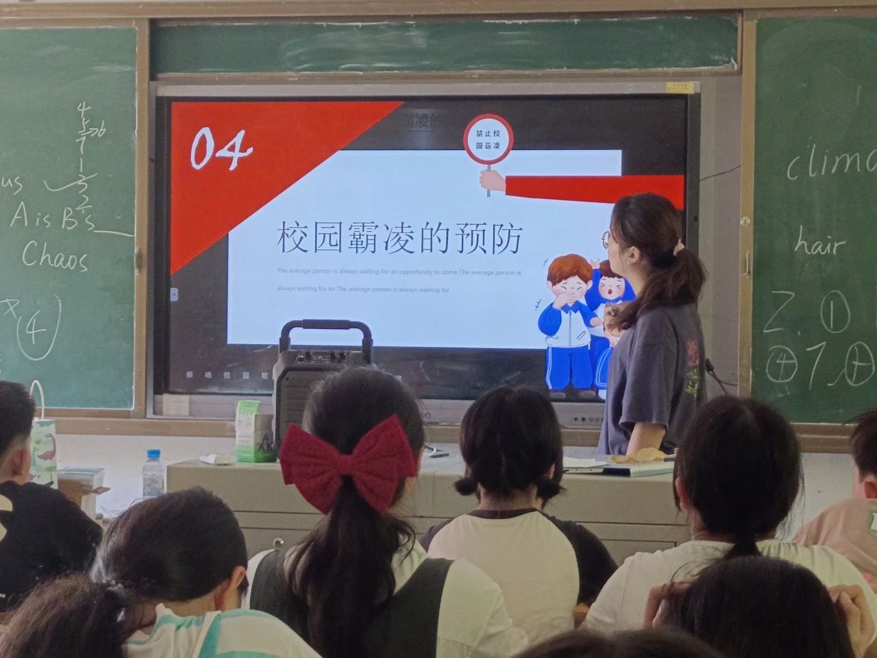 普法教育是此次义教活动的重要组成部分。队员黄晓桐紧贴初中生的认知特点和成长需求,同时也结合一系列社会热点事件,为同学们开设了多门普法课程,如防网络诈骗、防校园霸凌等。这些课程不仅为同学们构建了扎实的法律知识基础,更激发了他们内心深处对法律的敬畏与信仰。