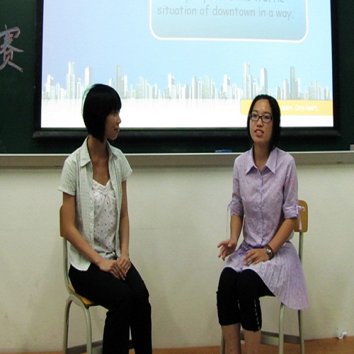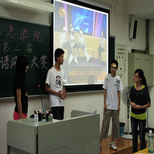 此次比赛最大的亮点在于参赛队伍的Presentation方式众多。第四组的同学模仿电视节目《鲁豫有约》,以访谈的形式为观众诠释了他们的主题――关注残疾人。据记者采访,他们选择这种方式凸显并深化主题,主要是为了在5分钟时间内以独特的视角来吸引观众和评委,呼吁更多的人关注残疾人。