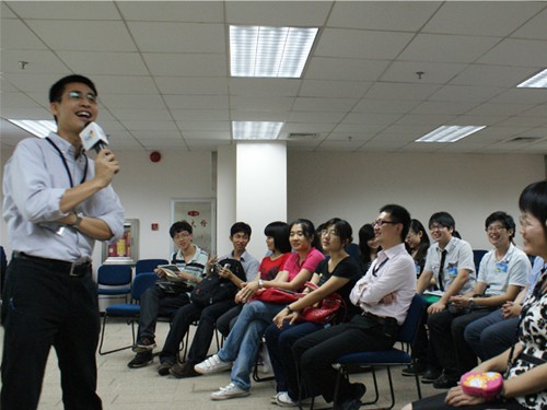 中午于员工餐厅享用了丰盛的午餐后,下午的交流活动于家居科技大楼会议室正式拉开帷幕。活动一开始同学们先玩起了游戏,“五毛一元”和“进化”两个小游戏拉近了学生和安利员工间的距离,亦消除了上午参观的疲劳感。