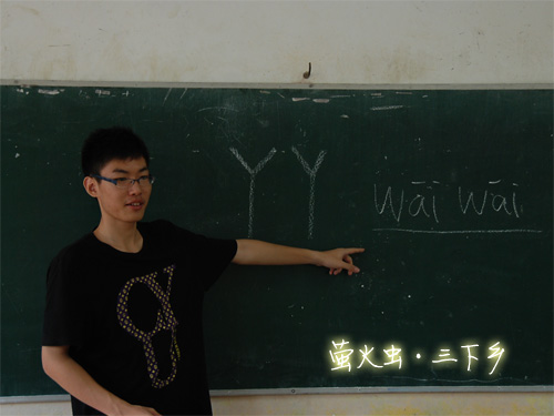 本网讯 思科信息学院“萤火虫”三下乡服务队开课首日,陈誉仁大笔一挥在黑板上写上了“YY”二字,讲台下孩子们用稚嫩的声音异口同声地读成了“丫丫”,他站在台上忍俊不禁,耐心地告诉孩子们是“YY”而不是“丫丫”。接下来的日子里,在YY队长的带领下“萤火虫”队的各种层出不穷的问题都迎刃而解。