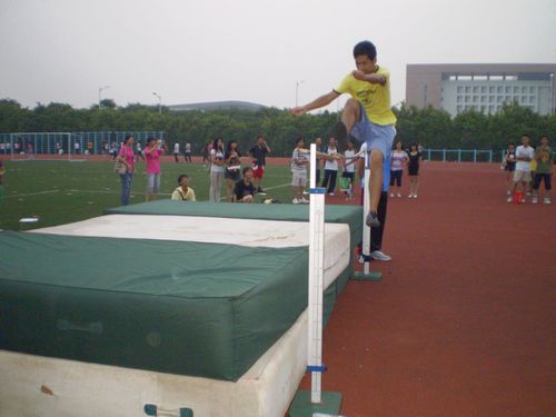 夜幕已渐渐降临,而跳高比赛正火热进行。虽然有不少同学碰竿,但他们并没有灰心,调整心态,越战越勇。来自金融5班的谭汇韬和来自经济3班的余南分别以一米六六和一米三二的优异成绩夺得男子、女子跳高第一。赛后,记者采访了谭汇韬同学。他表示,虽然赛前训练不多,但平时喜欢打篮球以及各种体育锻炼,身体协调能力和弹跳力较好,所以才有今天较佳的状态;同时也表达了学习专业的跳高技巧,不断提高自身能力的希望。