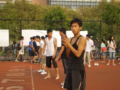 16时20分,比赛正式开始。第一项赛事是男子100米预决赛。选手各就各位,在裁判员一声令下,犹如离弦之箭,直冲向终点线。20个选手分四组进行,其中最引人注目的是第二组的谢昭生,赤脚上阵,飞奔至终点,取得小组第一。来自金融2班的他还参加了跳远比赛,从他匆匆赶往跳远比赛检录的那个离去的背影,我们看到了一个热爱运动,热爱生活的体育健儿形象。