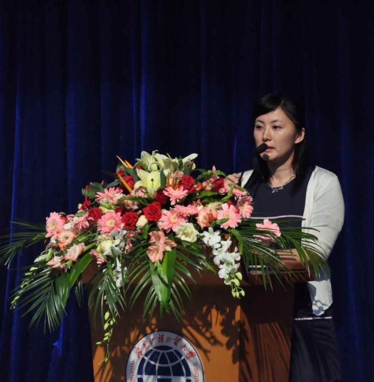 首先,顾也力上台致辞,对各位来宾与观众表示感谢,并预祝选手们取得成功。顾也力表示卡西欧日语演讲比赛已成为学校的一大品牌活动,这种专业的比赛有利于提高学生的素质和综合竞争力。