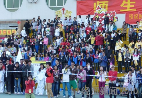 赛场上,运动健儿们自然是聚光灯下的焦点,但一直为他们加油助威的啦啦队同样是亮丽的风光。每当健儿们以迅驰的身影经过经贸看台时,加油呐喊的声音便会此起彼伏,欢呼便会伴鼓声齐飞。他们用不知疲倦的嘶吼告诉广外人:经贸学院的健儿们,你们是最棒的!