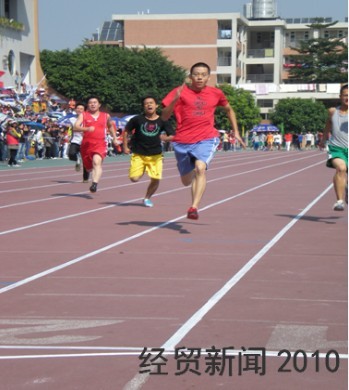 在上午的比赛开始之前,经贸党委副书记康为茂和团委书记刘郎莅临经贸大本营现场指导,为运动健儿们加油打气。在上午的预赛选拔中,经贸学院的大多数健儿顺利闯关。短暂的午间休息后,男子和女子的100米决赛率先打响。坚定、执着与希望,在延伸的白色跑道上点点凝聚,力量、信念与奋斗,在遥远的终点线上渐渐明亮。健儿们抛开风的追赶,一一越过那条神圣的终点线。最终,在前两年女子100米的比赛中一直屈居亚军的欧芷茜大爆发,一举夺魁,完成了对自己的超越。赛后她在采访中向记者透露,初赛起跑时的不理想让她在决赛中保持了警觉,并且表示会继续提高自己的耐力,来年争取卫冕。而上届冠军朱冰冰则稳扎稳打,将季军奖牌收入囊中。