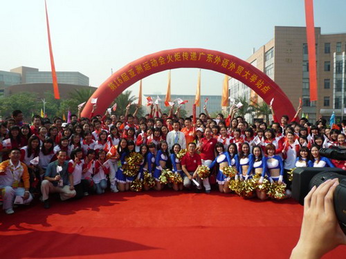 11月11日,广州大学城迎来亚运圣火传递活动。广东外语外贸大学校长仲伟合担任第49棒火炬手,在广外正门接过火炬,传递亚运激情。